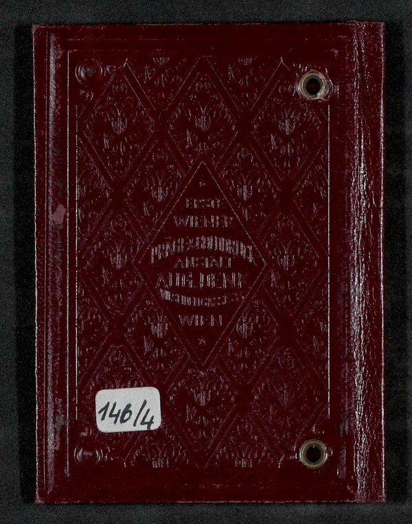 In geprägter Lederhülle samt Porträt. Fotografie: Anton Gustav Kolm, Wien.
