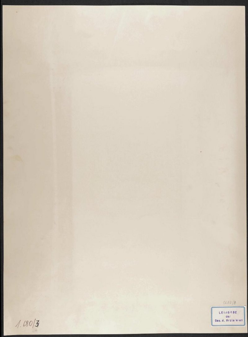 Die Lithografie wurde nach einer Zeichnung vermutlich von Georg Honig angefertigt und bei Eduard Ritmüller gedruckt. Rückseitig mit dem Vermerk über die Leihgabe der Gesellschaft der Ärzte, Wien.