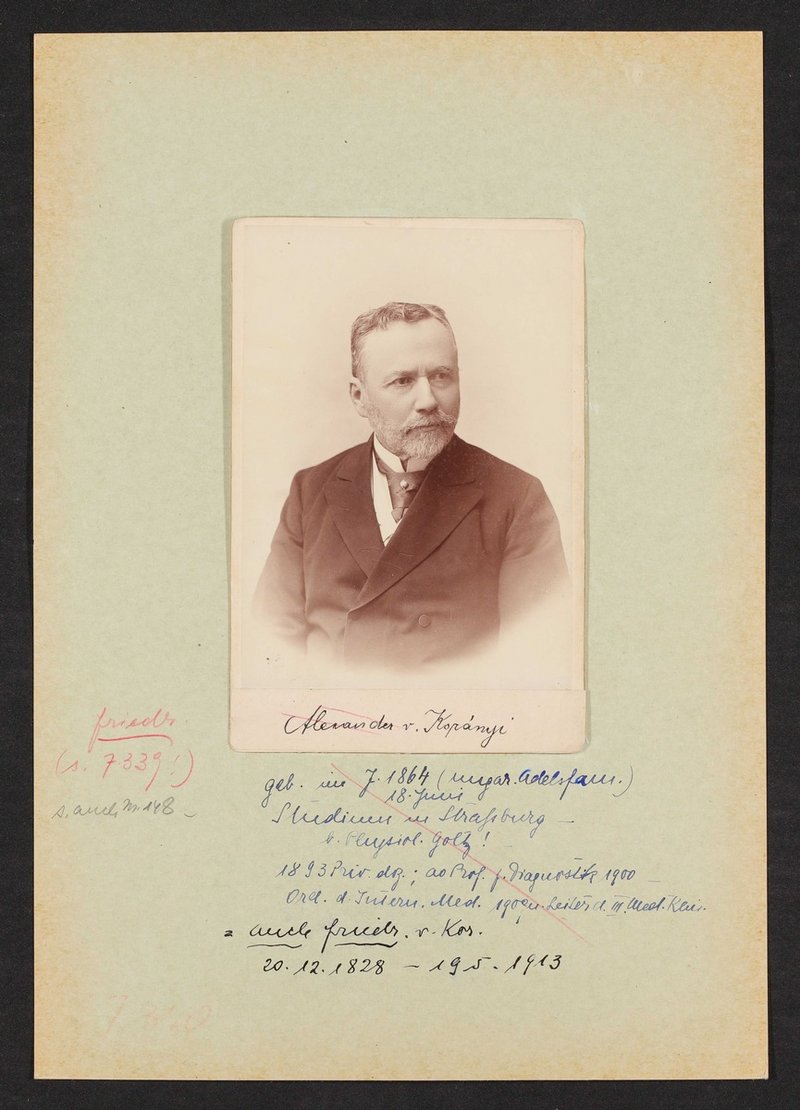 Die Fotografie stammt aus dem Fotoatelier von György Klösz, Budapest. Er war auf diesem Bild mit seinem Sohn, Sándor Korányi von Tolcsva, verwechselt, weshalb falsche lebensgeschichtliche Informationen angegeben wurden.