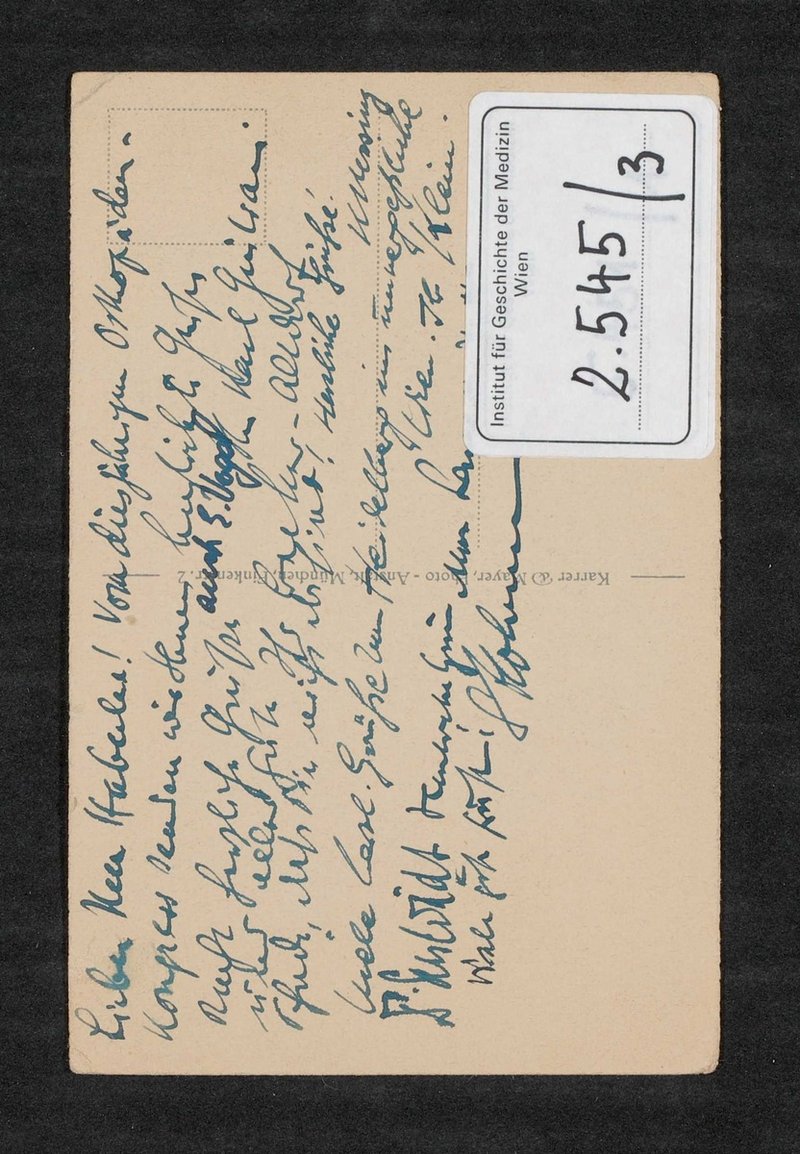 Vorlage war eine Fotografie aus dem Atelier Karrer und Mayer, München. Rückseitig mit einer Botschaft an Dr. Haberler, Wien, beschrieben.
