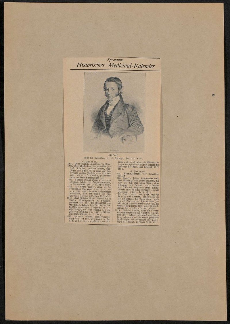Auszug aus: Spemanns Historischer Medicinal-Kalender. Die Vorlage stammte aus der Sammlung Ernst Roediger, Frankfurt am Main. Die Lithografie wurde von Francois Delpech auf der Basis einer Zeichnung von Nicolas-Eustache Maurin angefertigt. Neg. (9x12) 1.007