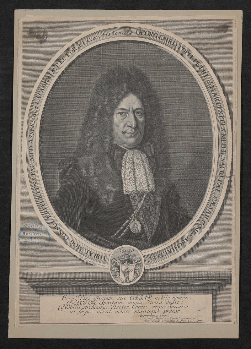 Der Kupferstich ist von Philipp Kilian auf Grundlage eines Gemäldes von Johann Christoph Beyschlag angefertigt worden. Vorderseitig mit einem Stempel des Instituts für Geschichte der Medizin, Wien, versehen.