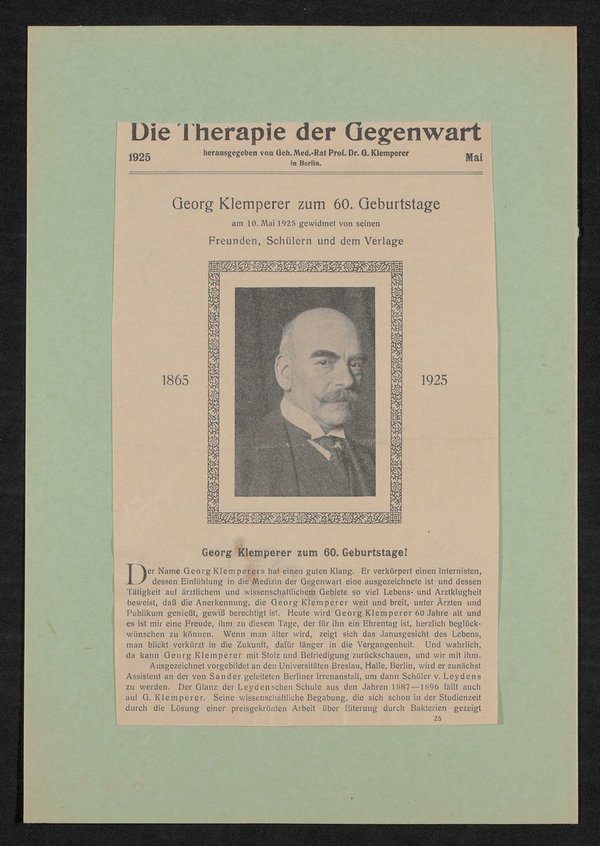 Therapie der Gegenwart. Monatsschrift für praktische Medizin, Verlag Urban und Schwarzenberg, Berlin, München und Wien