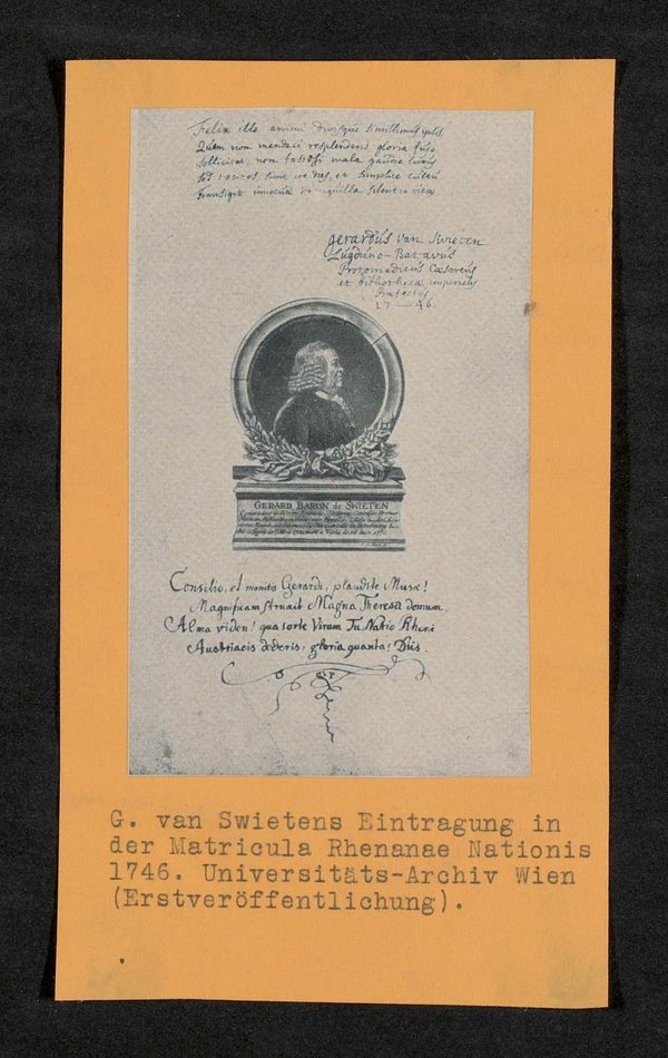 Die Vorlage befindet sich im Archiv der Universität Wien, Wien, unter der Signatur 106.I.2989. Der Kupferstich wurde von Johannes Gottfried Haid angefertigt.