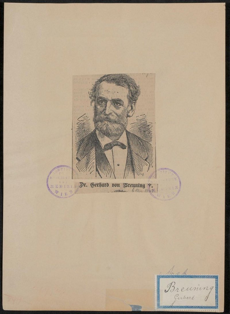 Die Vorlage des Bildes war eine Zeichnung. Der Ausschnitt stammt aus einem Nachruf. Der dazugehörige Text des Ausschnittes ist auf der Rückseite angebracht. Vorder- und rückseitig befinden sich Stempel des Institutes für Geschichte der Medizin, Wien.