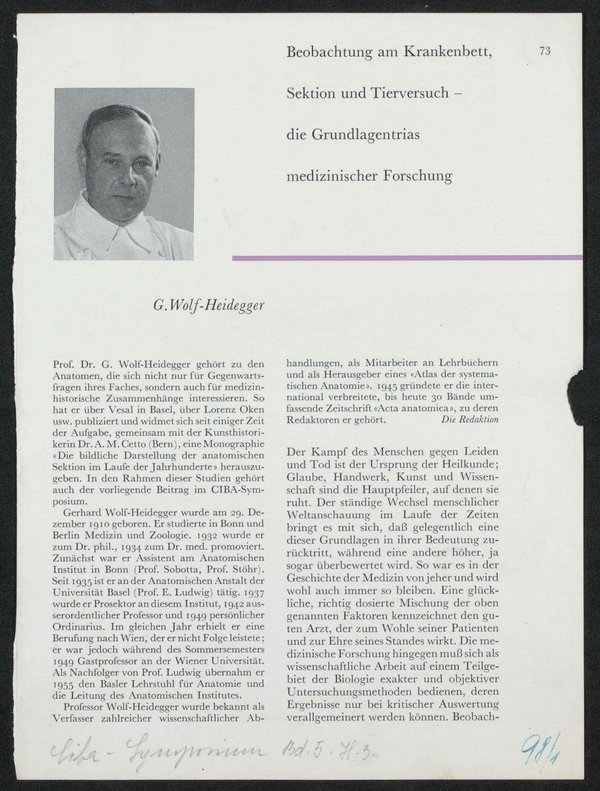 Porträt und Bemerkungen sind dem Ciba-Symposium, Bd. 5, Heft 3, 1957, S. 73, entnommen.