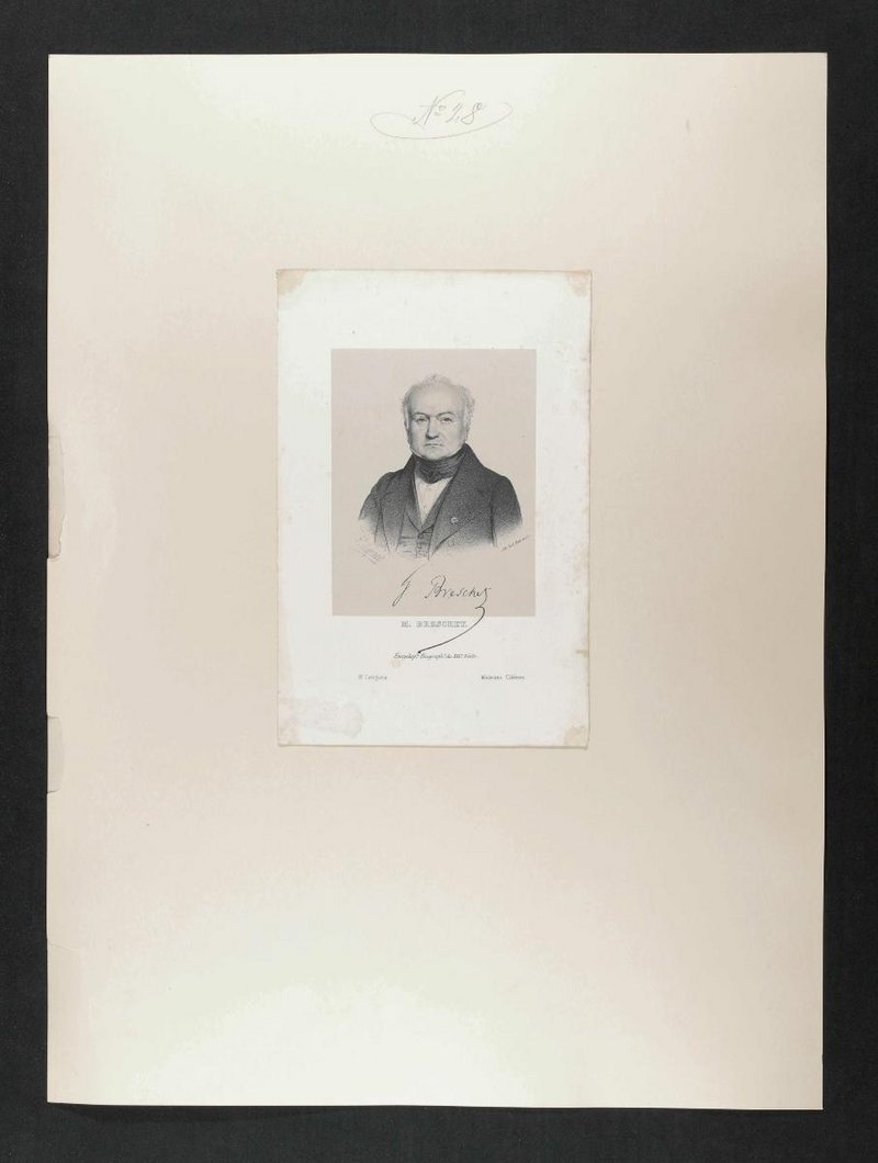 Auszug aus: Encyclopédie Biographique du XIX. Siecle, 8. Catégorie, Médecins Célèbres, Paris. Die Lithografie wurde von Paul Petit et Cie. auf der Basis einer Zeichnung vermutlich von Louis Legrand angefertigt. Rückseitig mit einem Stempel der Gesellschaft der Ärzte, Wien, versehen.