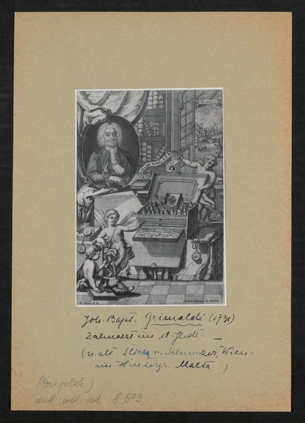 Reproduktion eines Kupferstiches von Andreas und Joseph Schmutzer, Wien, basierend auf einem Gemälde vermutlich von Lorenz Titian de Vecelli. Die Vorlage befand sich zum Zeitpunkt der Entstehung der Kopie in der Österreichischen Nationalbibliothek.