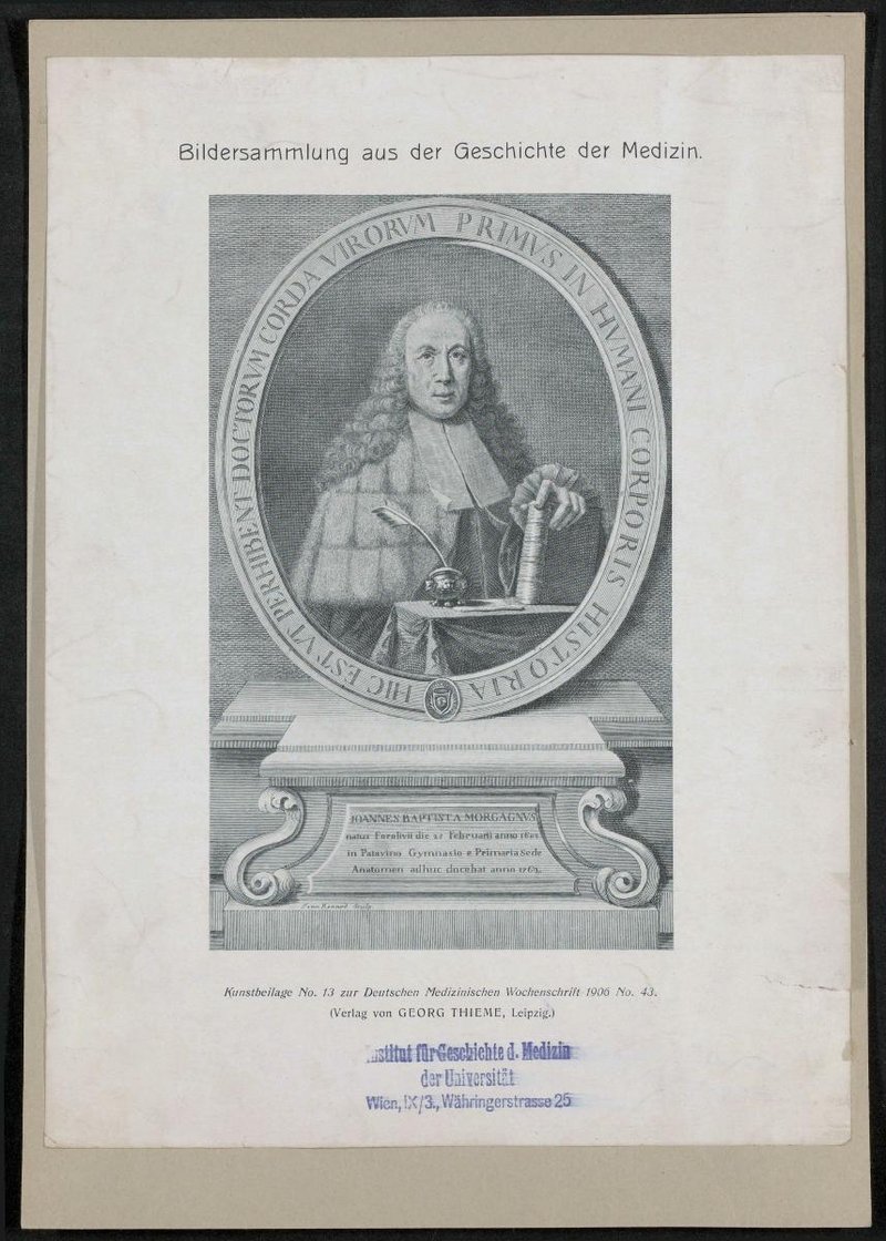 Auszug aus: Kunstbeilagen zur Deutschen Medizinischen Wochenschrift, 1906, Nr. 43. Die Vorlage des Bildes ist ein Kupferstich von Jean Renard. Unter dem Bild befindet sich ein Stempel des Institutes für Geschichte der Medizin, Wien.