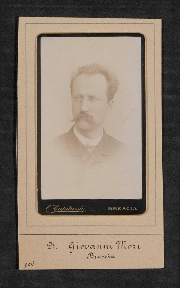 Die Fotografie wurde im Fotostudio Cristoforo Capitanio, Brescia, angefertigt. Das Bild stammt vermutlich aus der Sammlung von Adam Politzer.