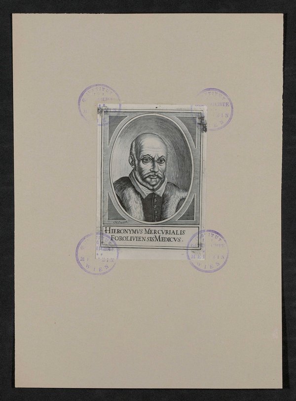 Vorlage war ein Druck von Jerome David. Vorderseitig mit Stempeln des Instituts für Geschichte der Medizin, Wien, versehen.