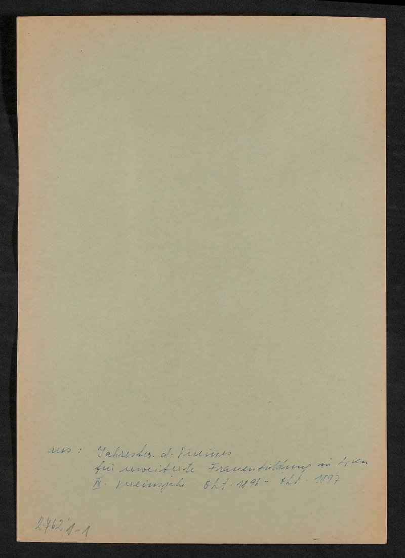 Die Vorlage stammte aus: Jahresbericht des Vereins für erweiterte Frauenbildung in Wien, 9. Vereinsjahr, 1897.