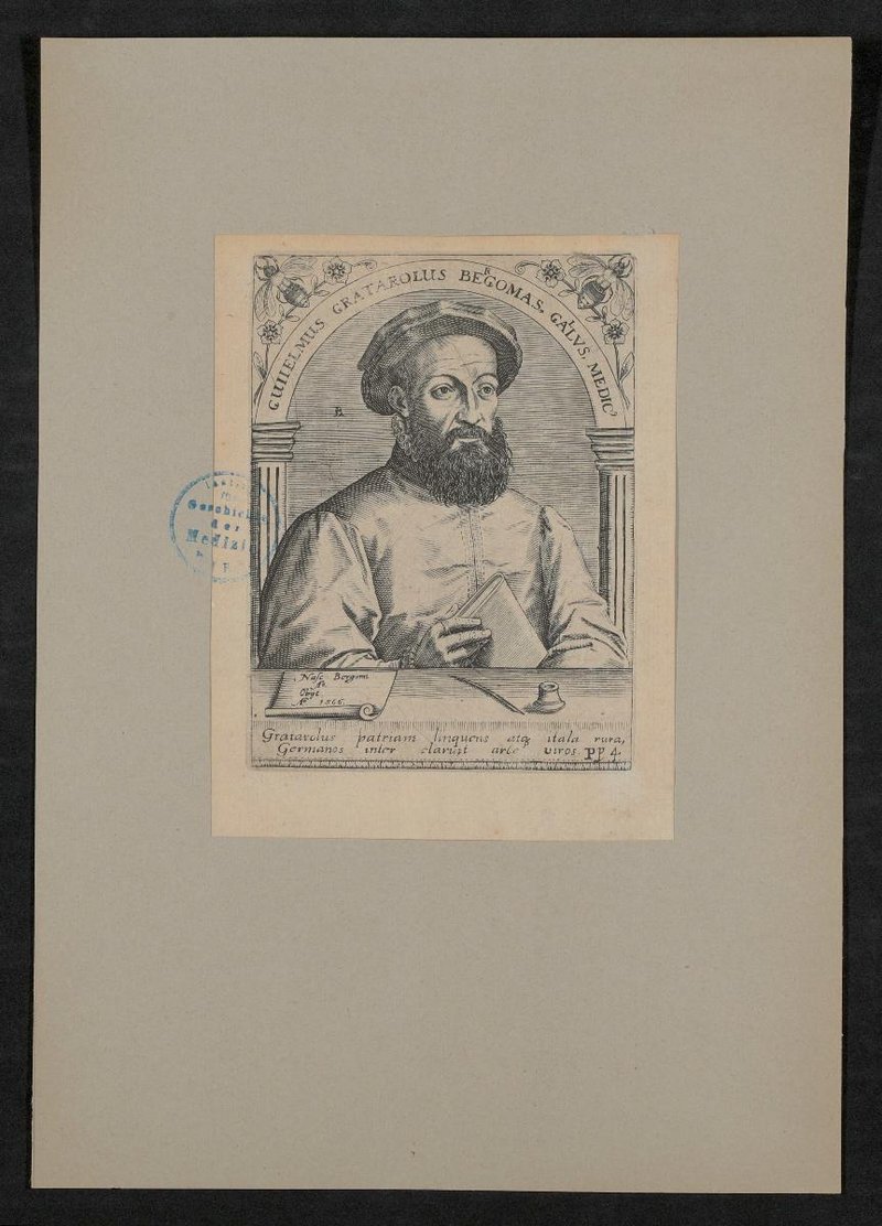 Der Stich basiert auf einer Zeichnung von Jean-Jacques Boissard. Auf der Vorderseite befindet sich ein Stempel des Instituts für Geschichte der Medizin, Wien.