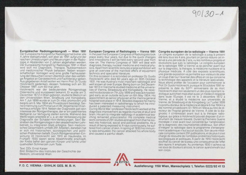 Mit Informationen über den Beitrag Holzknechts zur Entwicklung der Radiologie.