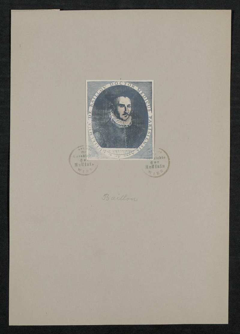 Vorlage war ein Kupferstich ungenannten Ursprungs. Vorderseitig mit zwei Stempeln des Instituts für Geschichte der Medizin, Wien, versehen.