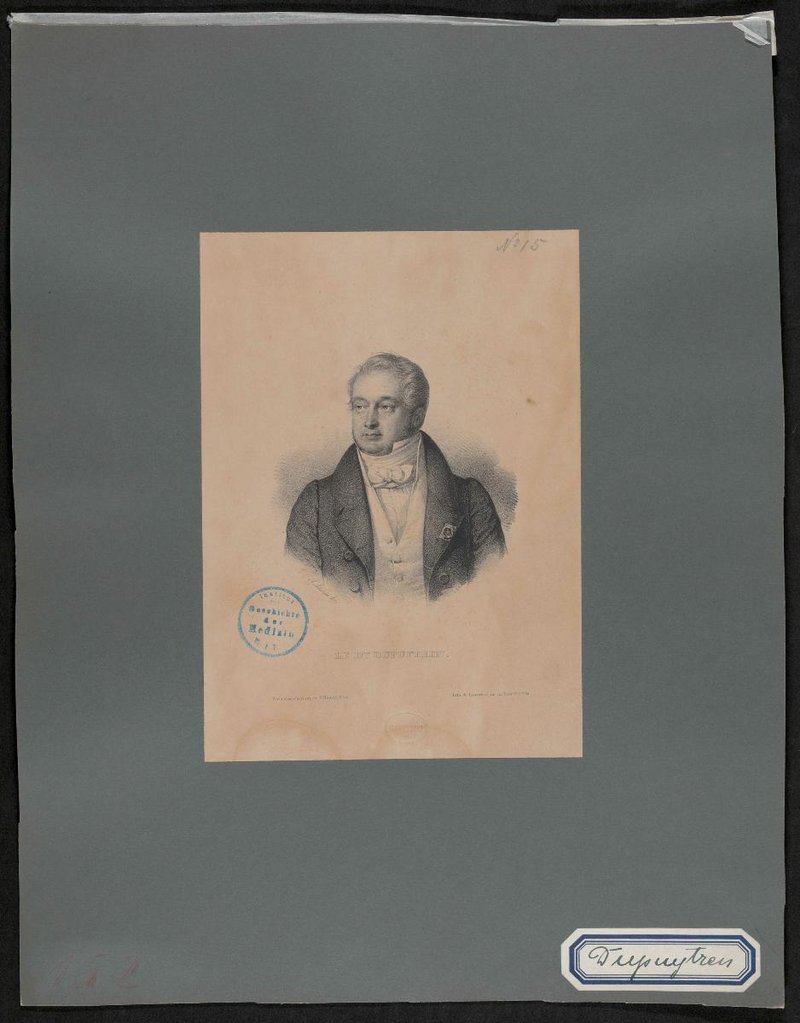 Die Lithografie wurde von Joseph Lemercier, Paris, nach einer Zeichnung von Antoine Maurin angefertigt. Vorderseitig mit einem Stempel des Institutes für Geschichte der Medizin, Wien, versehen.