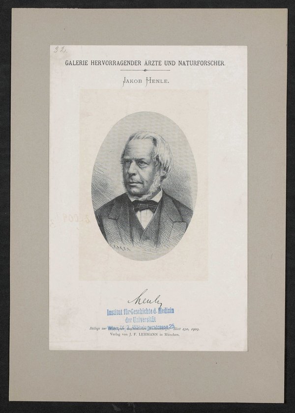 Auszug aus: Galerie hervorragender Ärzte und Naturforscher, in: Beilage zur Münchener medizinischen Wochenschrift, 1909, Bl. 250. Vorderseitig mit einem Stempel des Instituts für Geschichte der Medizin, Wien, versehen.