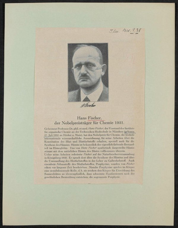 Zeitungsausschnitt aus Therapeutische Berichte, 1931.