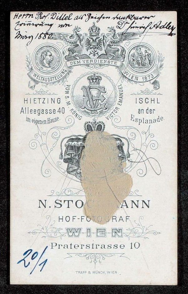 Die Fotografie wurde von Nikolaus Stockmann, Hof-Fotograf, aufgenommen.
