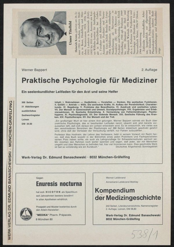 Der Untertitel der Zeitschrift lautet: Auslese aus dem medizinischen Schrifttum für den praktischen Arzt und Facharzt. Es handelt sich um die Ausgabe vom 01. Januar 1971.