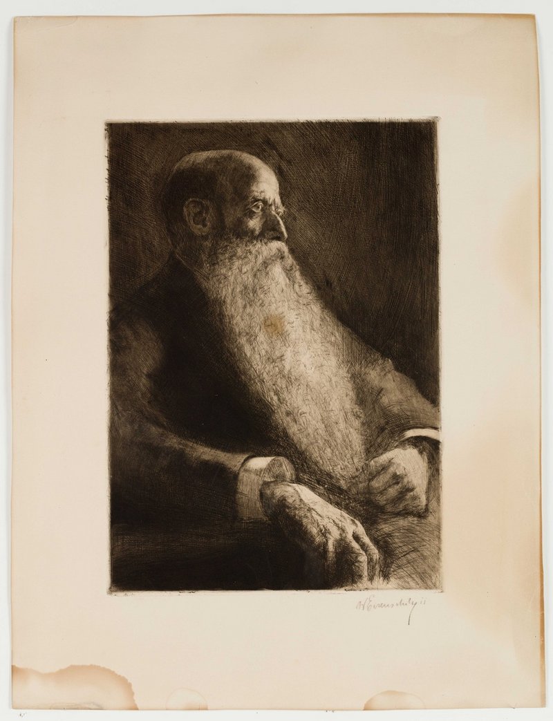 Die Radierung wurde vermutlich von Willy Eisenschitz angefertigt. Auf der Rückseite mit einem Vermerk zur Leihgabe durch die Gesellschaft der Ärzte, Wien. Digitalisat von Reiner Riedler.