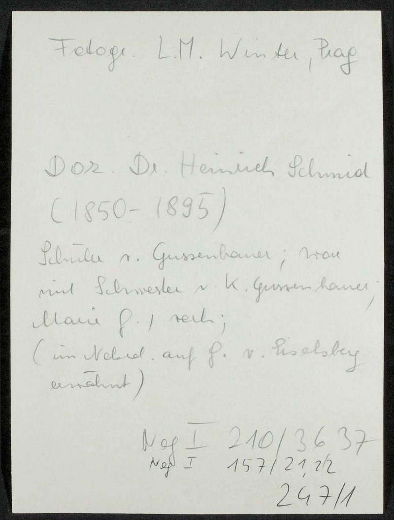 Die als Vorlage dienende Fotografie befand sich zum Zeitpunkt der Entstehung der Kopie im Besitz von Harald Buzzi, dem Neffen von Carl Gussenbauer, Wien. Sie wurde von Moritz Ludwig Winter angefertigt. Neg. I 157/21,22 Neg. I 210/36,37