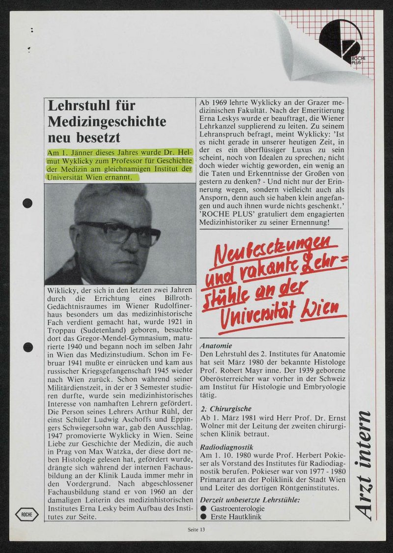 Porträt und Beitrag stammen aus: Roche plus. Die aktuelle Ärzteinformation, Wien 1981, S. 13.