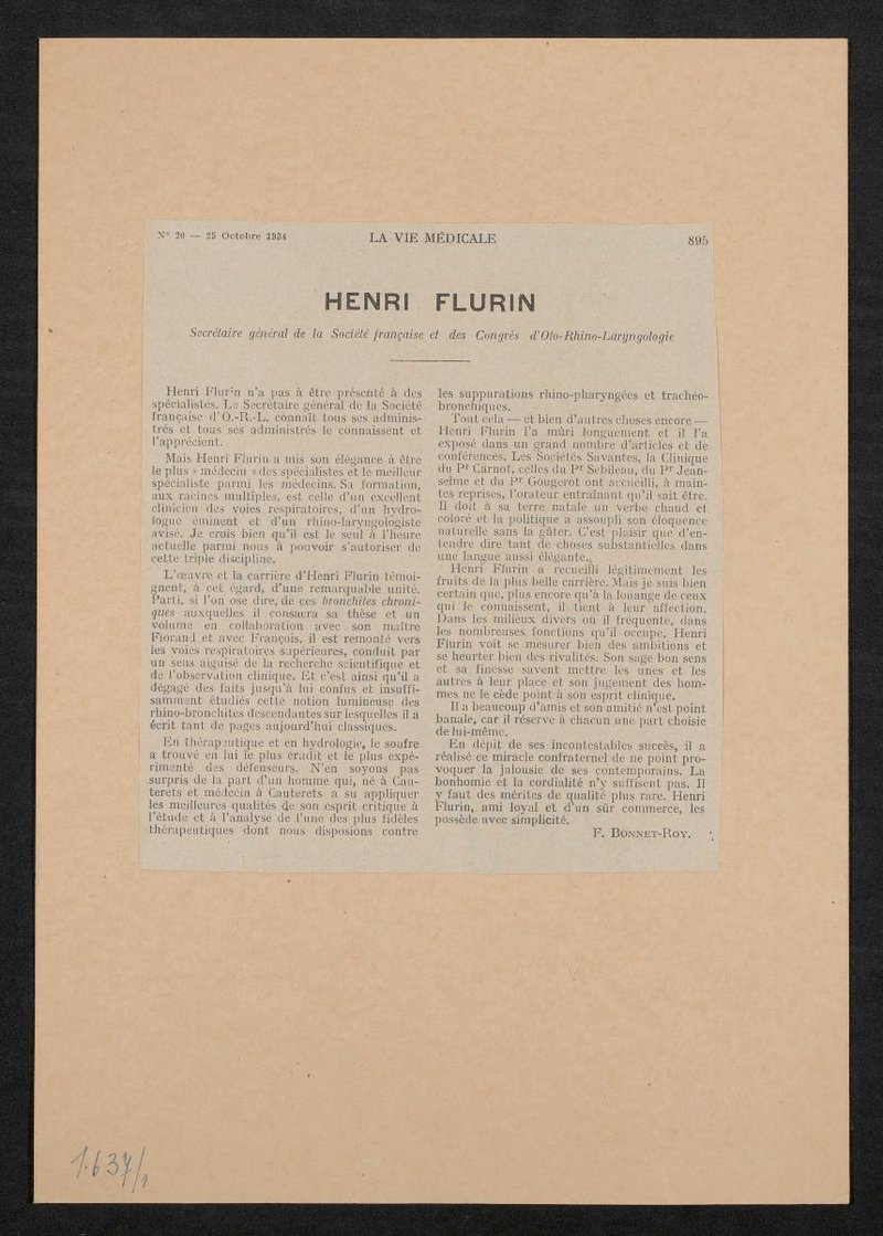 Das Foto wurde von Manuel Freres, Paris, angefertigt. Ausschnitt aus: La Vie Medicale, 1934, Nr. 20., S. 895.