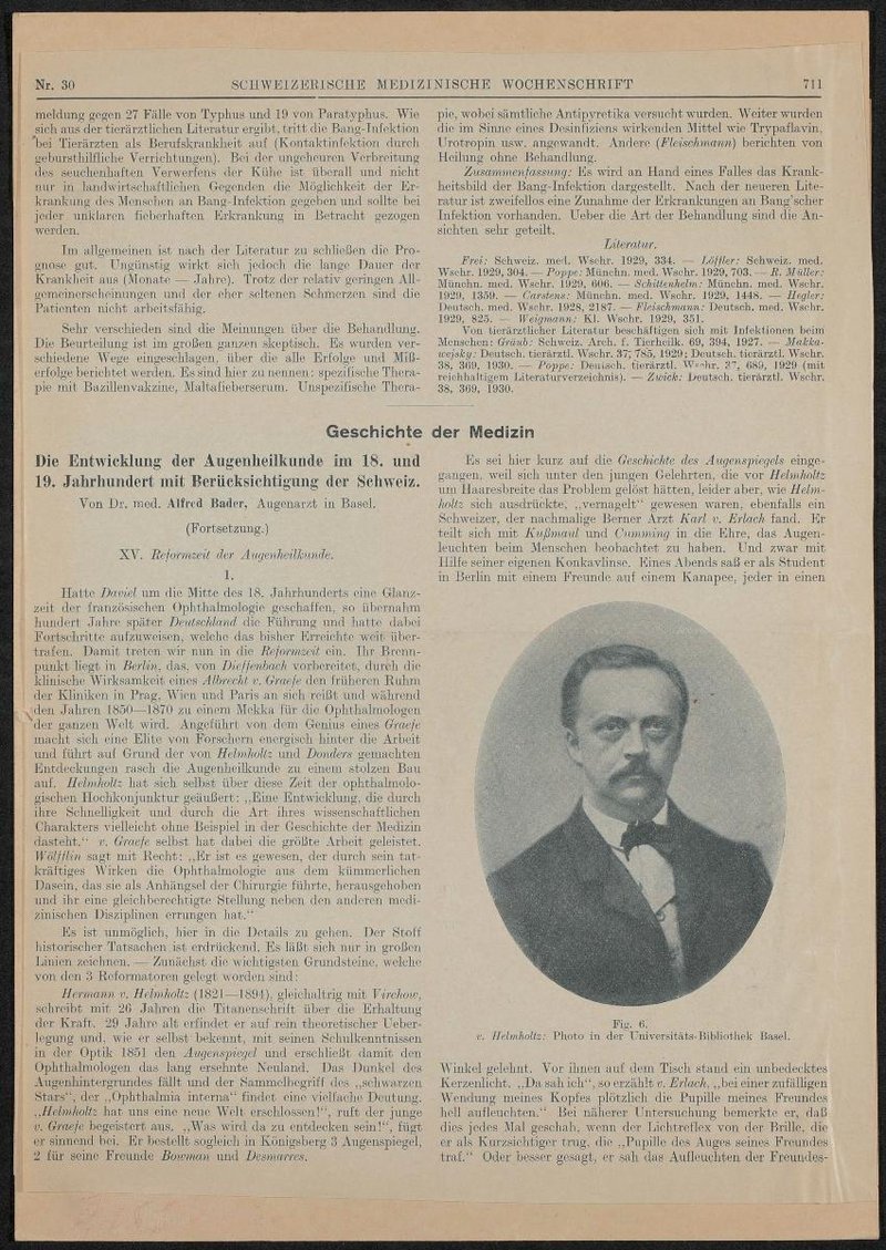 Zeitungsausschnitt aus der Schweizerischen Medizinischen Wochenschrift.