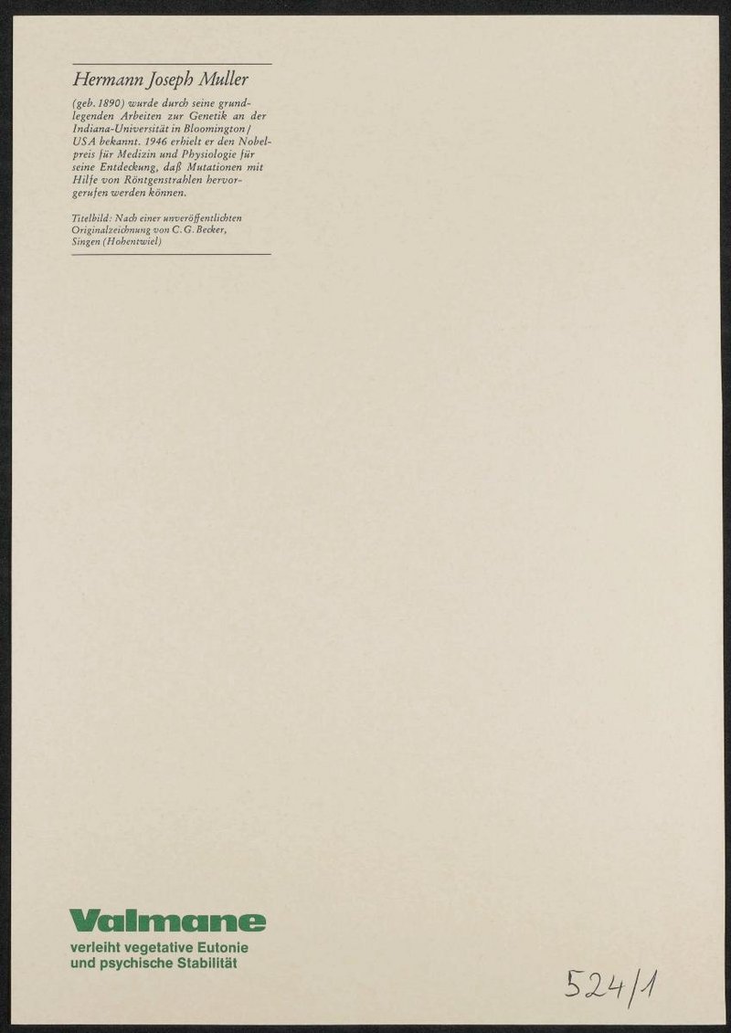 Die Zeichnung wurde von Curth Georg Becker angefertigt. Sie befindet sich auf einer Reklame für das Medikament Valmane.