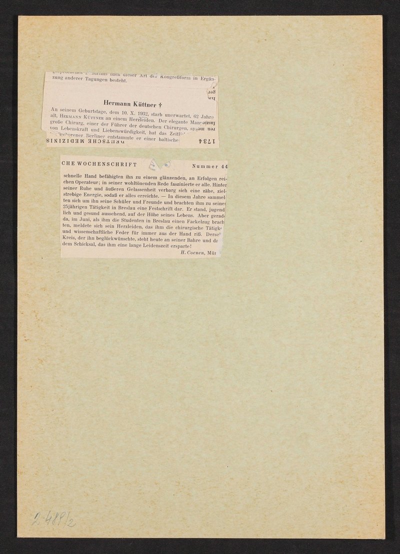 Auszug aus: Galerie hervorragender Ärzte und Naturforscher, in: Beilage zur Münchener medizinischen Wochenschrift, Nr. 44, 1932. Das Bild wurde von Julius Friedrich Lehmann verlegt.