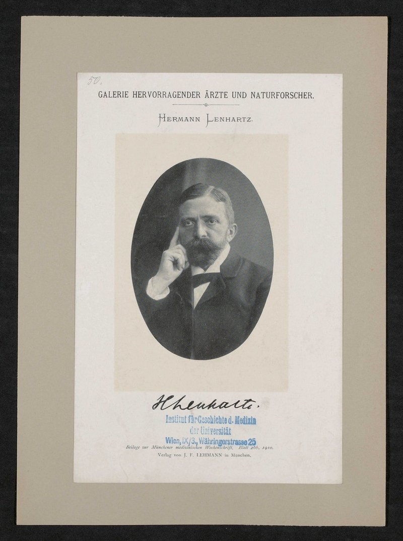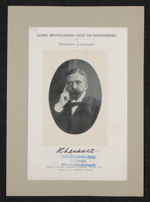 Auszug aus: Galerie hervorragender Ärzte und Naturforscher, in: Beilage zur Münchener medizinischen Wochenschrift, 1910, Bl. 266. Vorderseitig mit einem Stempel des Instituts für Geschichte der Medizin, Wien, versehen.
