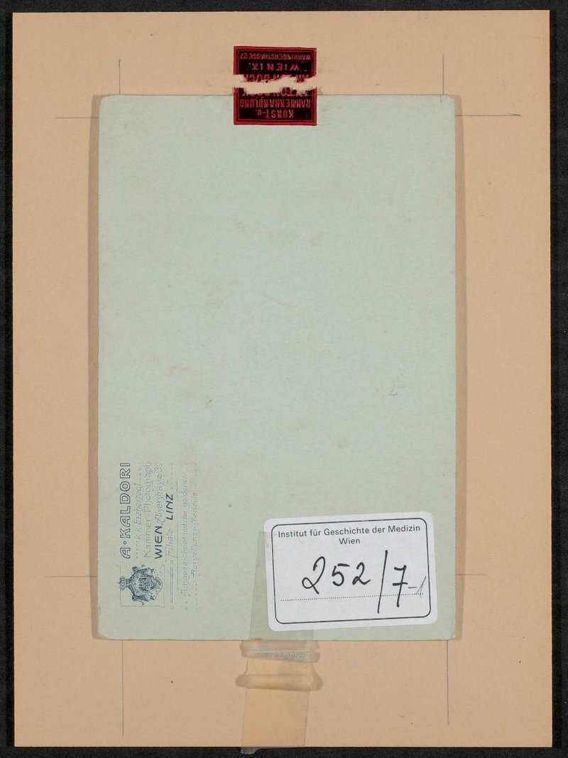 Die Fotografie wurde von Adolf Kaldori, k.k. Erzherzog und Kammer-Photograph, Linz und Wien, angefertigt. Neg I 27/5, 6