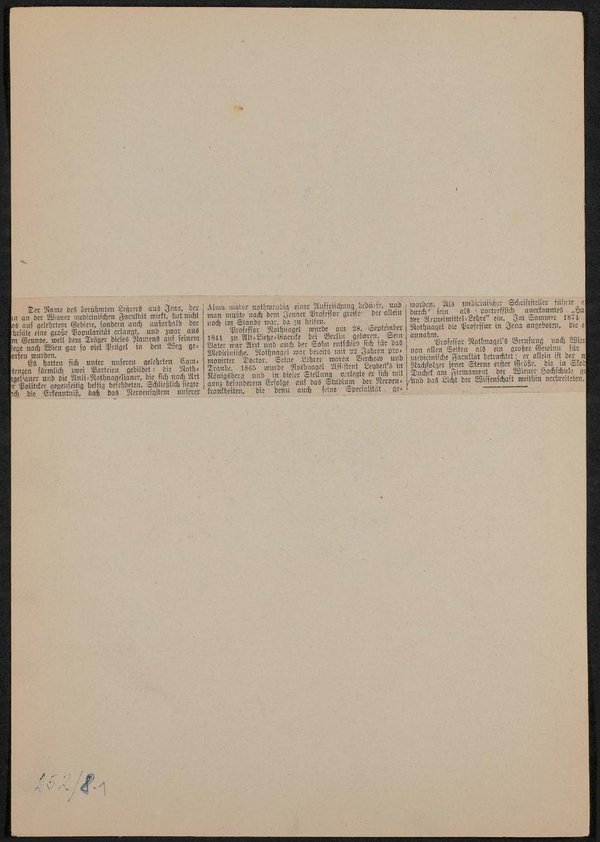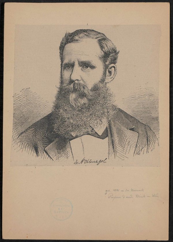 Mit einem Stempel des Instituts für Geschichte der Medizin, Wien, und rückseitig mit Angaben über die Laufbahn Nothnagels versehen.