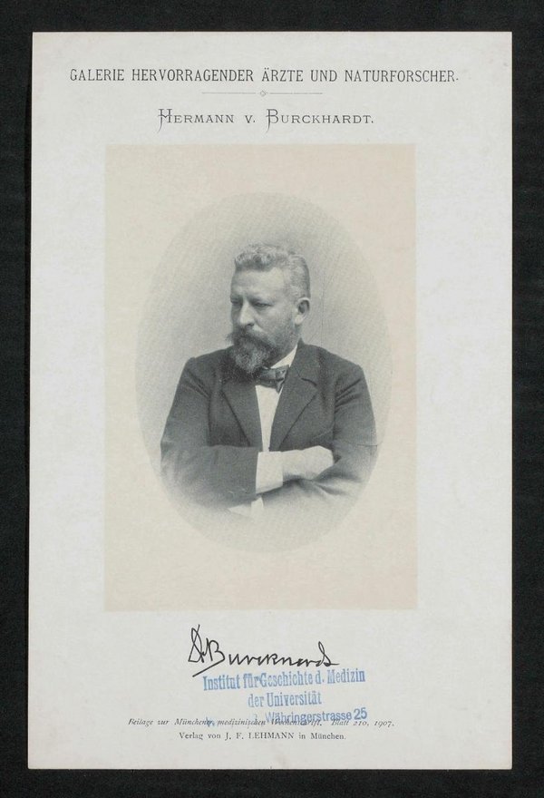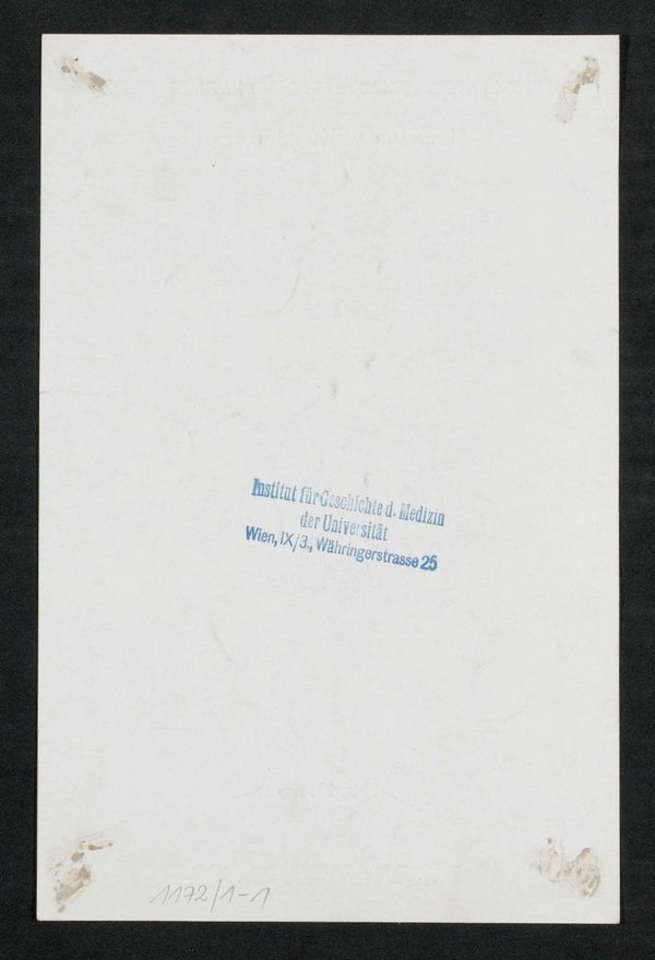 Auszug aus: Galerie hervorragender Ärzte und Naturforscher, in: Beilage zur Münchener medizinischen Wochenschrift, 1907, Bl. 210. Vorder- und rückseitig mit einem Stempel des Instituts für Geschichte der Medizin, Wien, versehen.