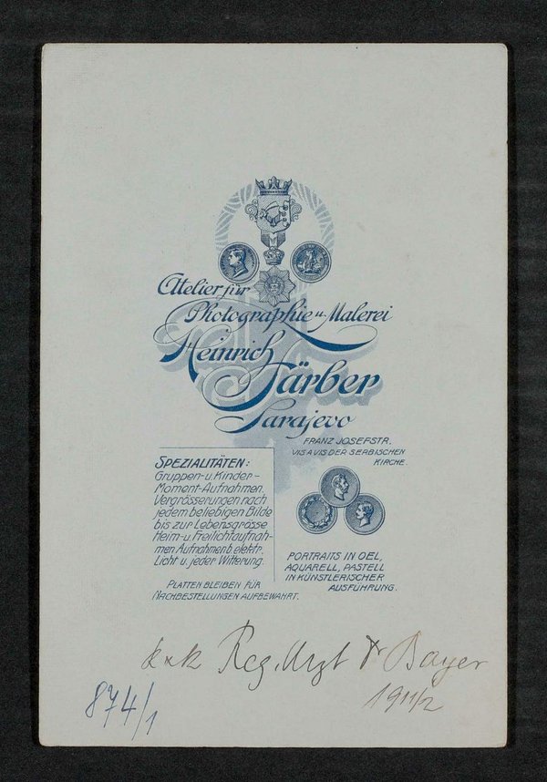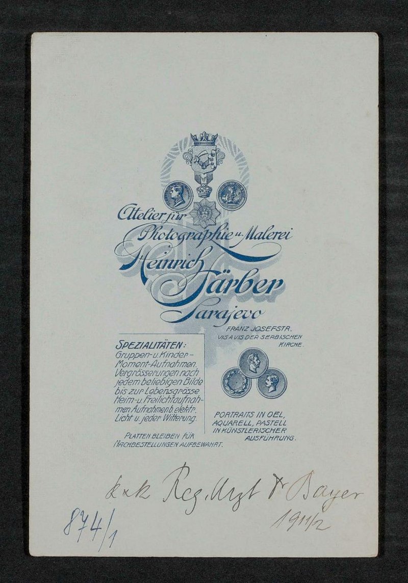 Die Fotografie wurde von Heinrich Färber, Atelier für Photographie und Malerei, Sarajevo, angefertigt.