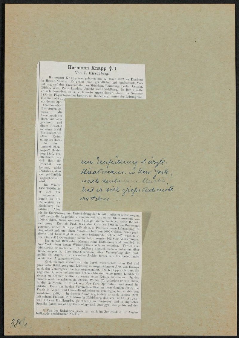 Der Nachruf stammt von J. Hirschberg. Der dazugehörige Text ist auf der Rückseite angebracht.