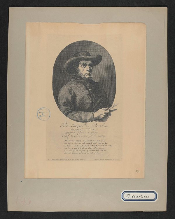 Das Bild ist eine Reproduktion eines Kupferstiches von Pieter van den Berge, Amsterdam, aus: Octave Pasteau, La Chirurgie Urinaire en France, Paris 1908, Abb. 13. Vorderseitig mit einem Stempel des Institutes für Geschichte der Medizin, Wien, versehen.