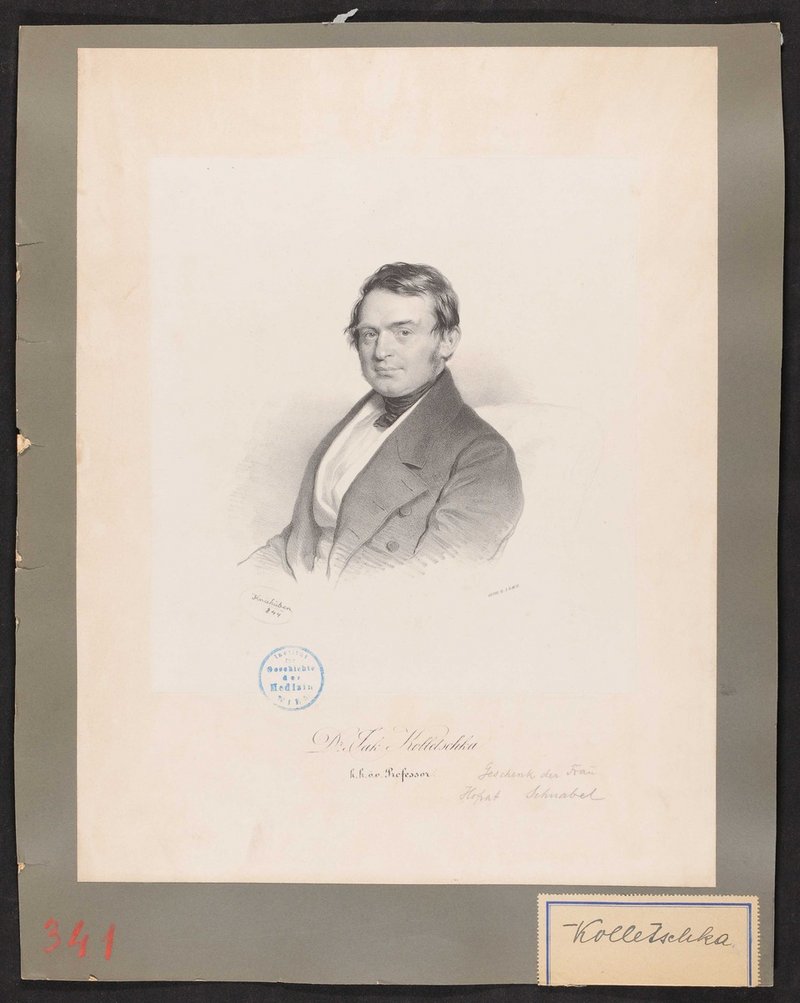 Die Lithographie stammt von Josef Kriehuber, gedruckt wurde sie von Johann Rauh. Vorderseitig mit einem Stempel des Institutes für Geschichte der Medizin, Wien, versehen. Neg III 127/1