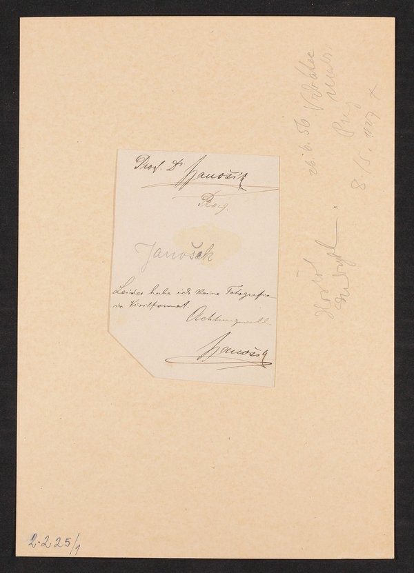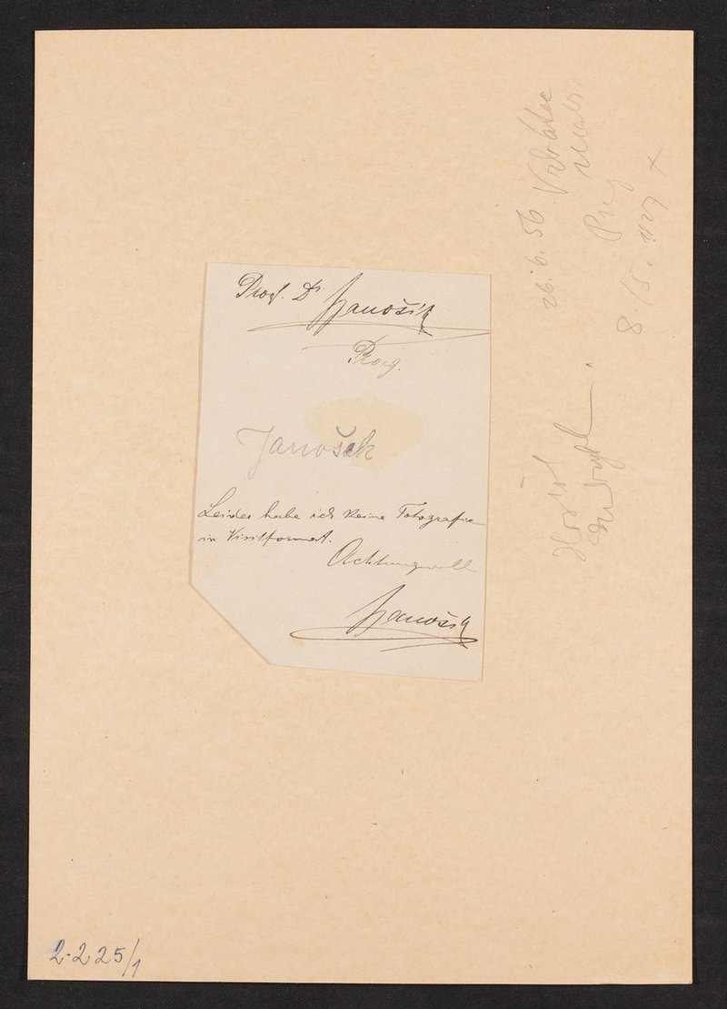 Außerdem mit eigenhändiger Widmung auf der Rückseite sowie nachträglich, vermutlich im Josephinum hinzugefügten Anmerkungen, u.a. zu seinem Tod.