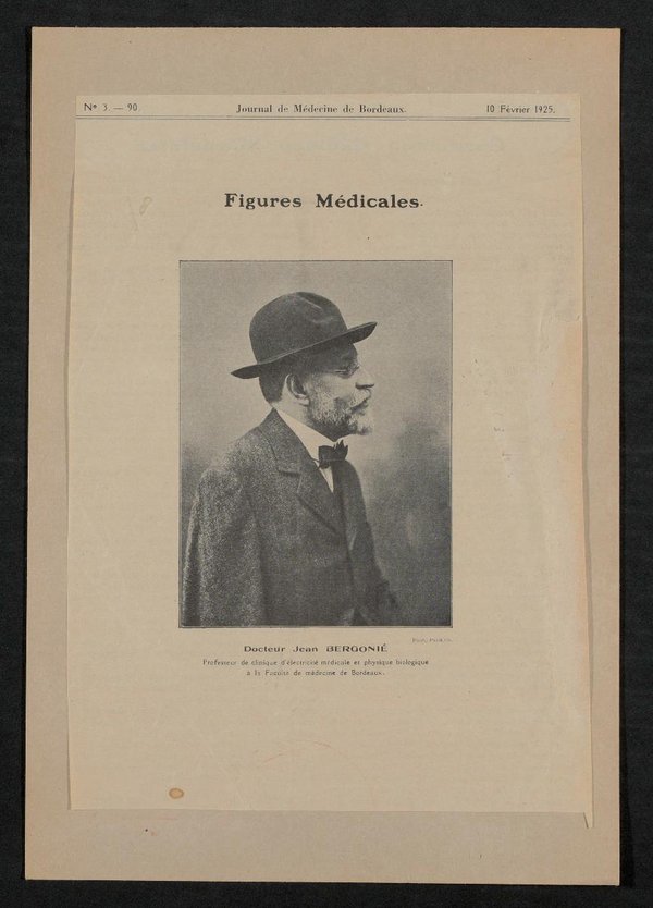 Rückseitig mit einem Bericht über seine fachlichen Fertigkeiten. Bild und Bericht sind der französischsprachigen Fachzeitschrift Journal de Medicine de Bordeaux, Nr. 3, 10. Februar 1925, S. 90, entnommen worden. Die der Abbildung zugrundeliegende Fotografie wurde vermutlich von Frères Panajou, Bordeaux, angefertigt.