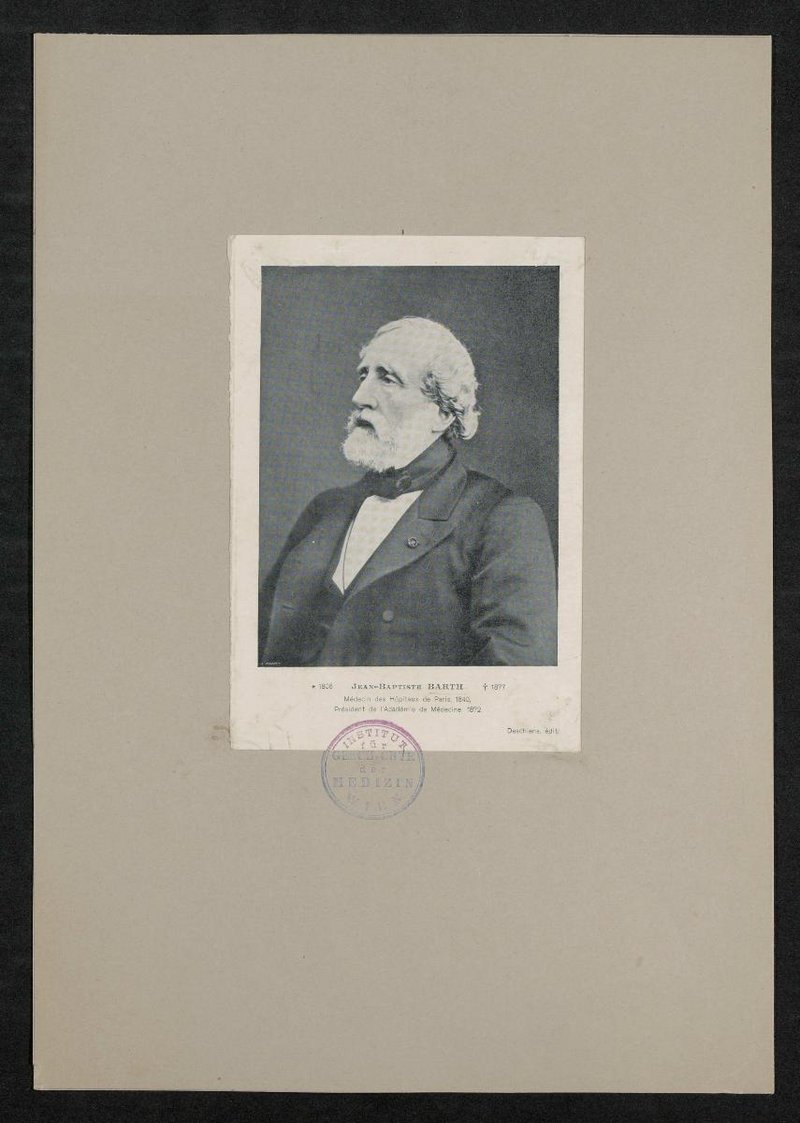 Die der Abbildung zugrundeliegende Fotografie ist von Anatole Pougnet, der Ausschnitt von Deschiens, Paris, angefertigt worden, vermutlich für eine Serie zu berühmten Ärzt:innen. Vorderseitig mit einem Stempel des Instituts für Geschichte der Medizin, Wien, versehen.