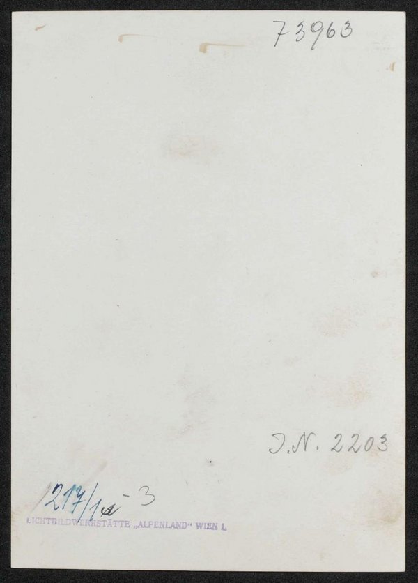 Die Fotografie wurde von der Lichtbildwerkstätte Alpenland in Wien, Wien, angefertigt. Vorlage der Fotografie war eine Lithografie von Johann Clarot, gedruckt von Johann Höfelich, 1839. Die Vorlage der Lithografie war ein Gemälde von Alexander Clarot.
