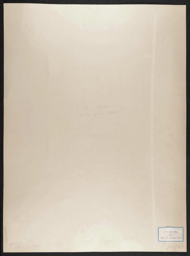 Die Lithografie wurde von Johann Clarot, Wien, angefertigt und bei Johann Höfelich, Wien, gedruckt. Die Vorlage war ein Gemälde von Alexander Clarot, Prag. Rückseitig befindet sich ein Stempel der Gesellschaft der Ärzte in Wien, Wien.