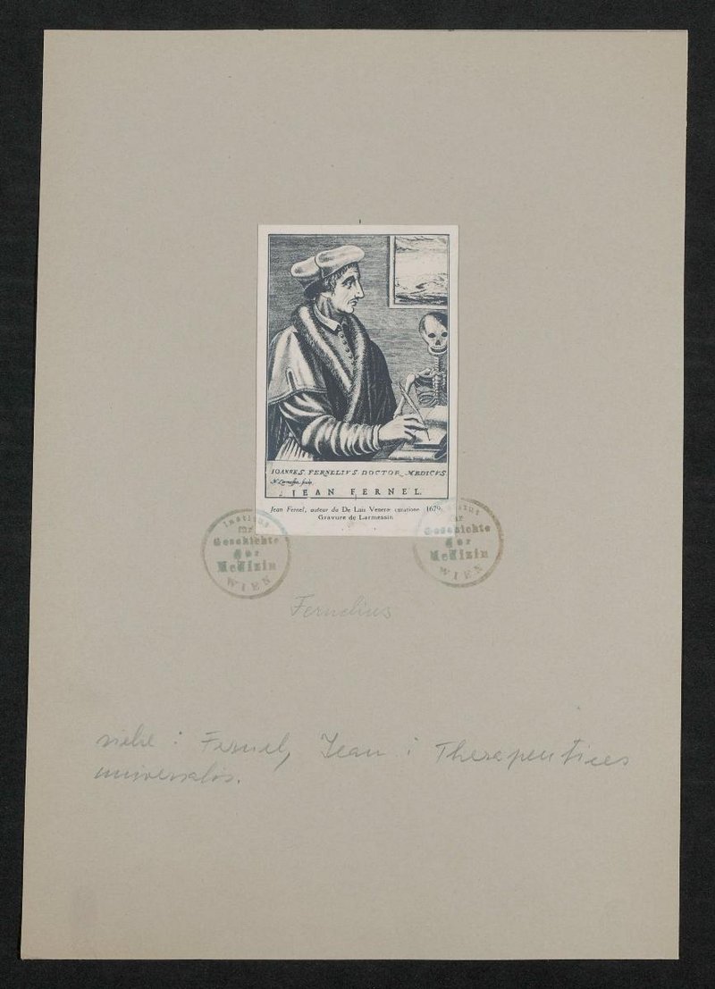 Die Vorlage wurde von Nicolas II de Larmessin angefertigt. Vorderseitig mit zwei Stempeln des Instituts für Geschichte der Medizin, Wien, versehen.