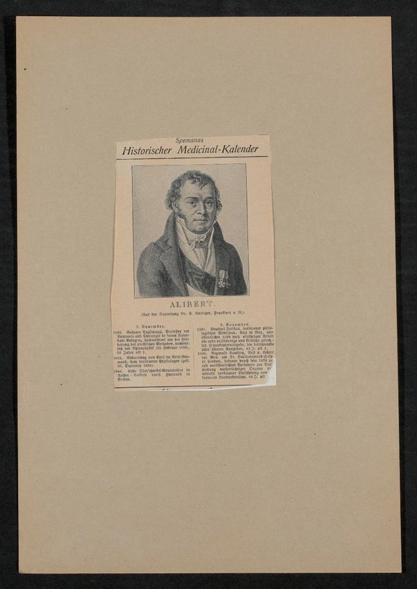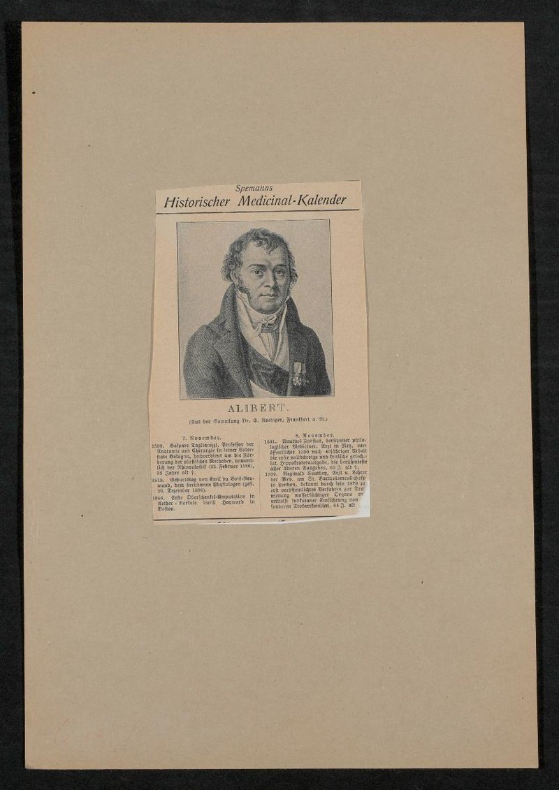 Auszug aus: Spemanns Historischer Medicinal-Kalender. Die Vorlage stammte aus der Sammlung Ernst Roediger, Frankfurt am Main.