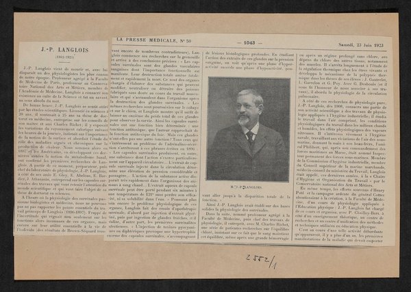 Bild und Nachruf sind der französischsprachigen Fachzeitschrift La Presse Medicale, Nr. 50, 23. Juni 1923, S. 1043 f., entnommen worden.