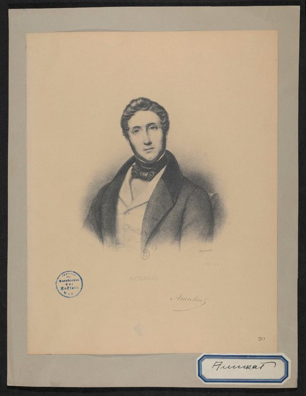 Der Druck basiert auf einer Lithografie von Bellia aus dem Jahr 1838, welche nach einem Gemälde von Naigeon angefertigt wurde.