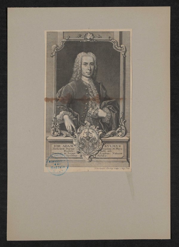 Der Kupferstich wurde von Hieronymus Sperling angefertigt. Auf der Vorderseite befindet sich ein Stempel des Instituts für Geschichte der Medizin, Wien.