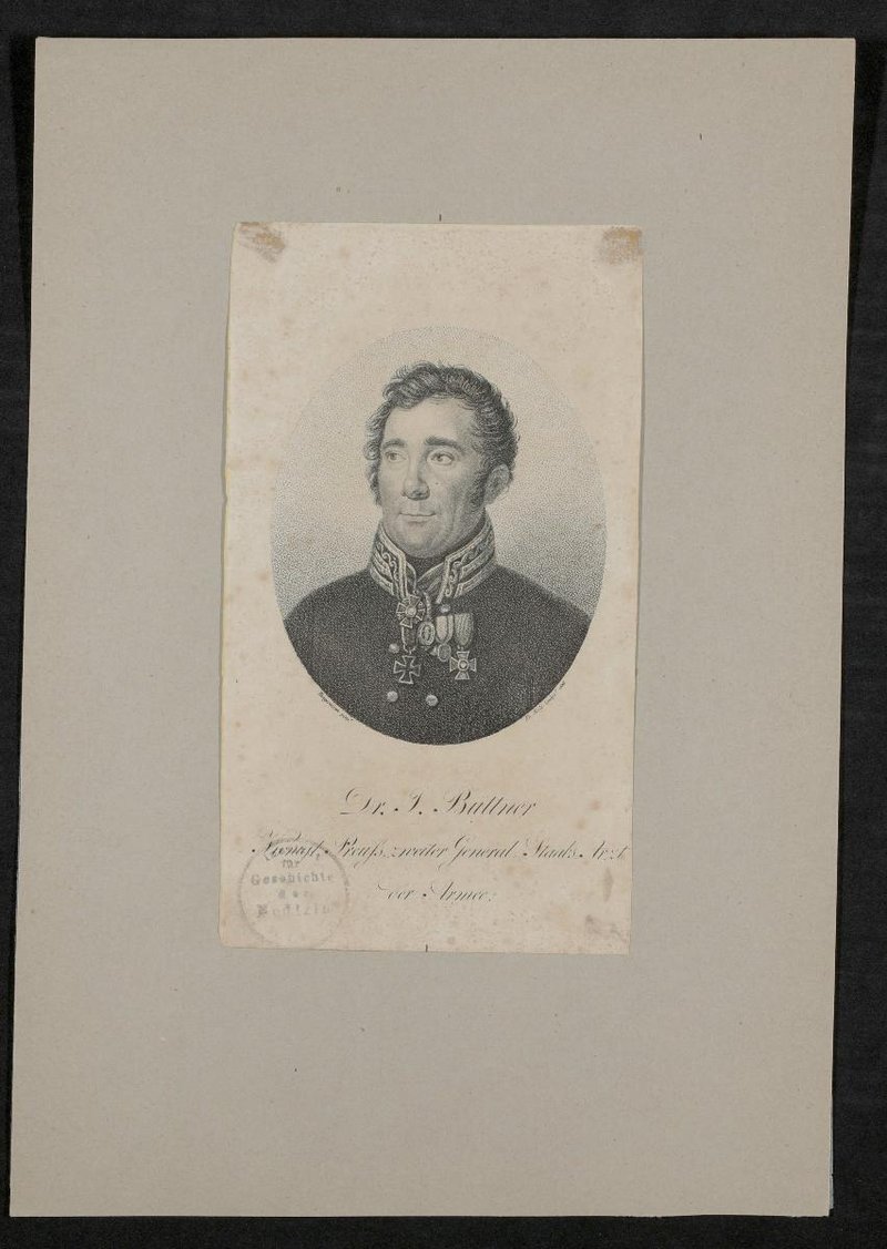 Der Stich wurde von Johann Friedrich Bolt, nach einer Vorlage von Christian Tangermann angefertigt. Vorderseitig mit einem Stempel des Institutes für Geschichte der Medizin, Wien, versehen.